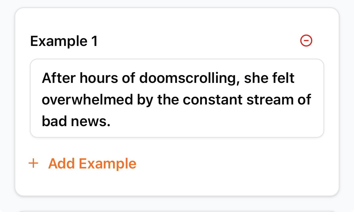The solution was simple: replace the fixed-height input fields with adaptive inputs whose height automatically expands as the content grows. Instead of forcing users to scroll horizontally, the field now grows vertically to accommodate longer definitions and example sentences.